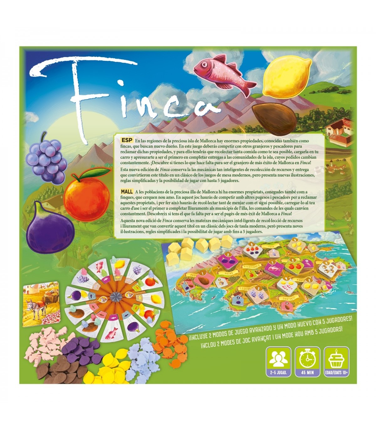Vuelve el clásico Finca, pero con nuevas ilustraciones, reglas simplificadas, dos mini expansiones incluidas y la posibilidad de jugar con hasta 5 jugadores. Turno tras turno, recolectaréis recursos y los entregaréis en distintas regiones de Mallorca para ganar puntos de victoria. ¡Descubre si tienes lo que hace falta para ser el granjero de más éxito de la isla!