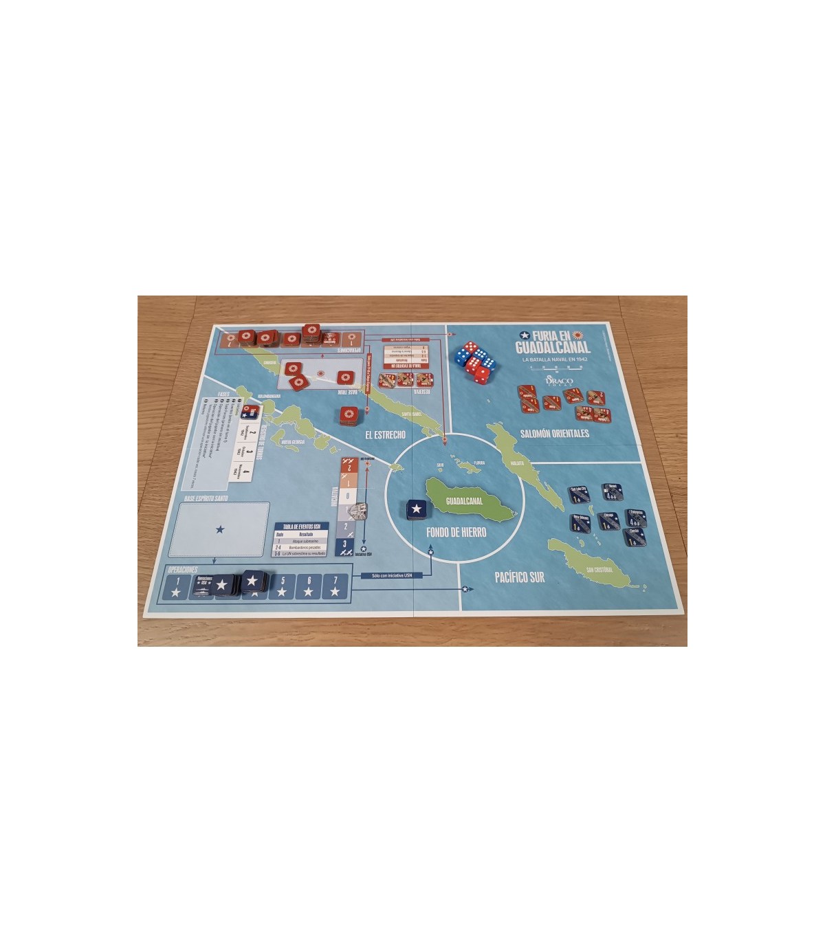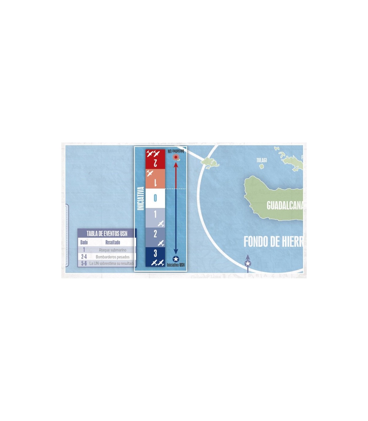 En Furia en Guadalcanal debes controlar la isla y el Campo Henderson, un aeródromo clave para la batalla. Mediante activaciones cada jugador mueve o despliega Task Forces preparadas en secreto previamente.