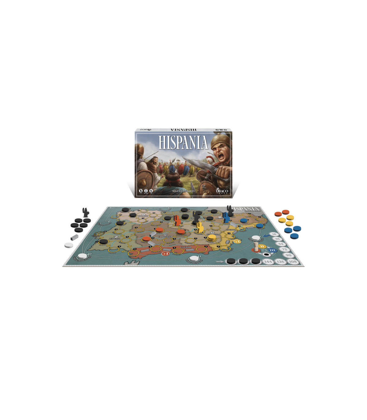 HISPANIA – La conquista romana, es un juego cooperativo en el que de 1 a 3 jugadores toman el papel de todos los pretores y cónsules que Roma envió a Hispania durante casi 200 años, hasta que el primer emperador César Augusto culminó la conquista con la derrota final de los cántabros y la incorporación de Hispania a su flamante Imperio. También tiene la opción de un jugador adicional que llevará los ejércitos hispanos, en modo competitivo.